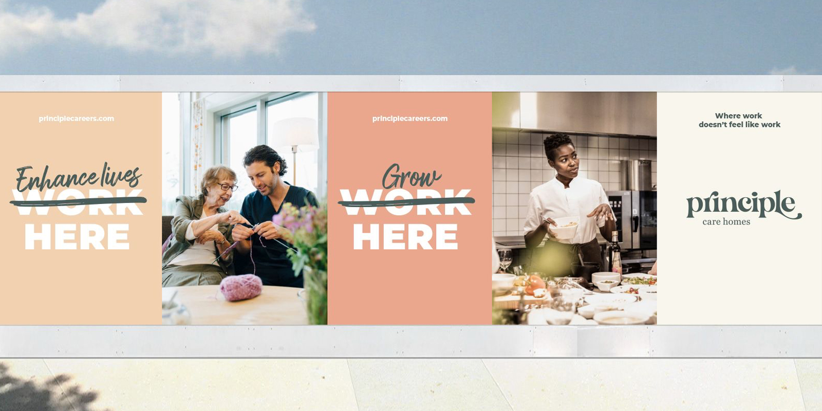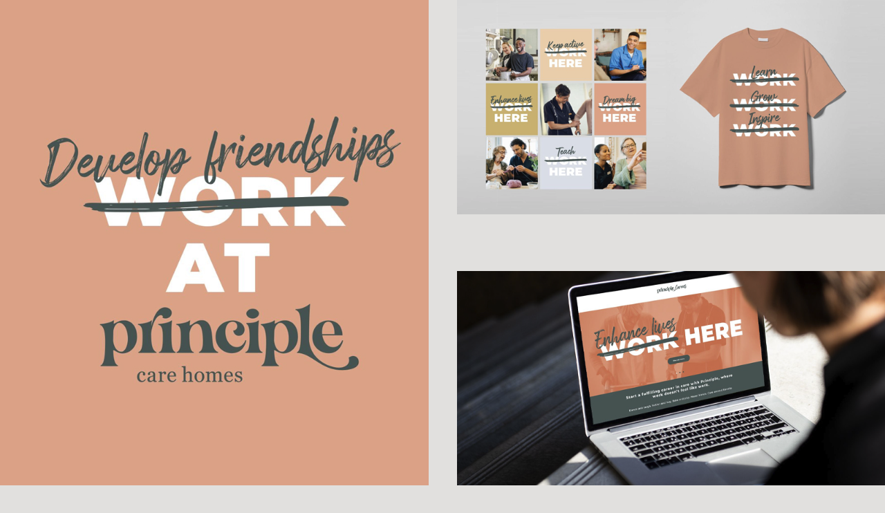 Talent is everything when it comes to delivering a first-class care experience. Ahead of the launch of their new boutique care home network, we helped Principle challenge perceptions and change the conversation about careers in care. A bold new brand led with the message ‘Don’t work at Principle’ and engaged prospects with the difference they can make to others and for themselves — professionally, personally and in the lives of residents every single day.
